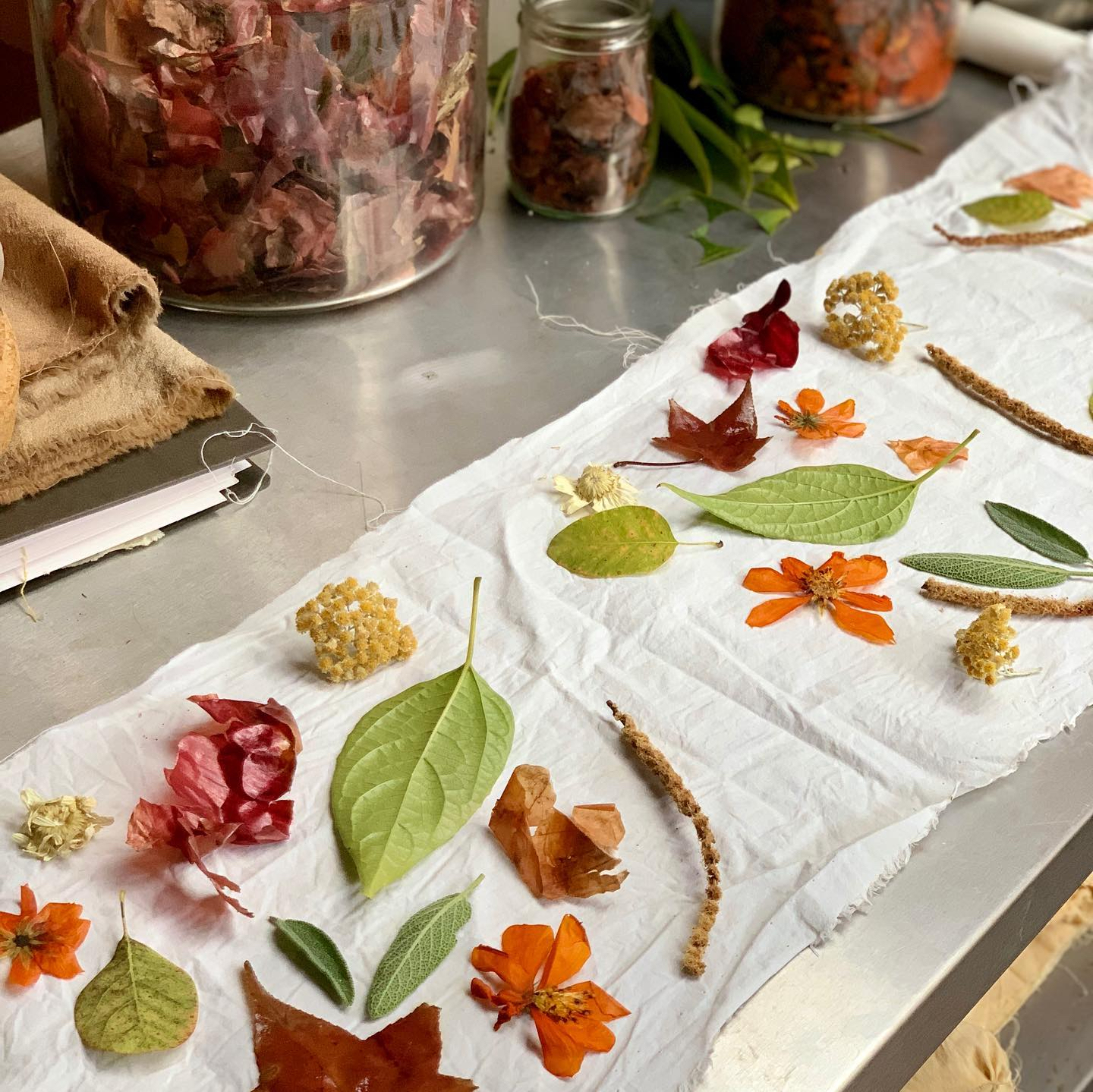 昨冬にはフランスの新聞「ル・モンド」のカルチャー誌が特集を組むほど注目されており、現在は植物染色とあわせて、植物を布に押し当てて形や色を直接転写する技法「エコプリント」にも熱心に取り組んでいます。