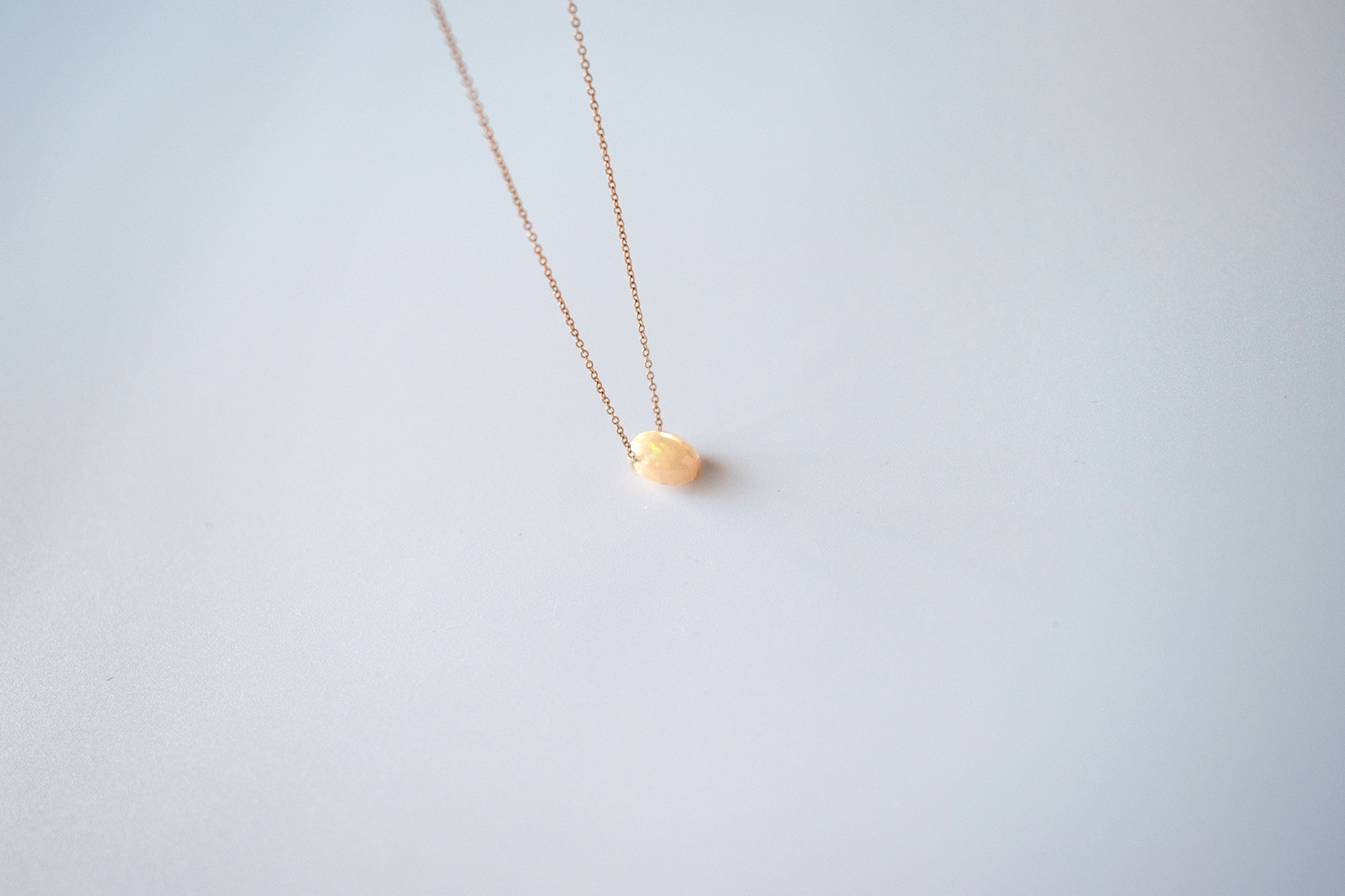 ANCHOVYでは、このコンセプトを実現するため小さな穴を開けることができる分厚いオパールを使用しています。不必要な要素を一切省いたミニマルなラインは、身につけると素肌に馴染みつつも圧倒的な存在感を放ちます。