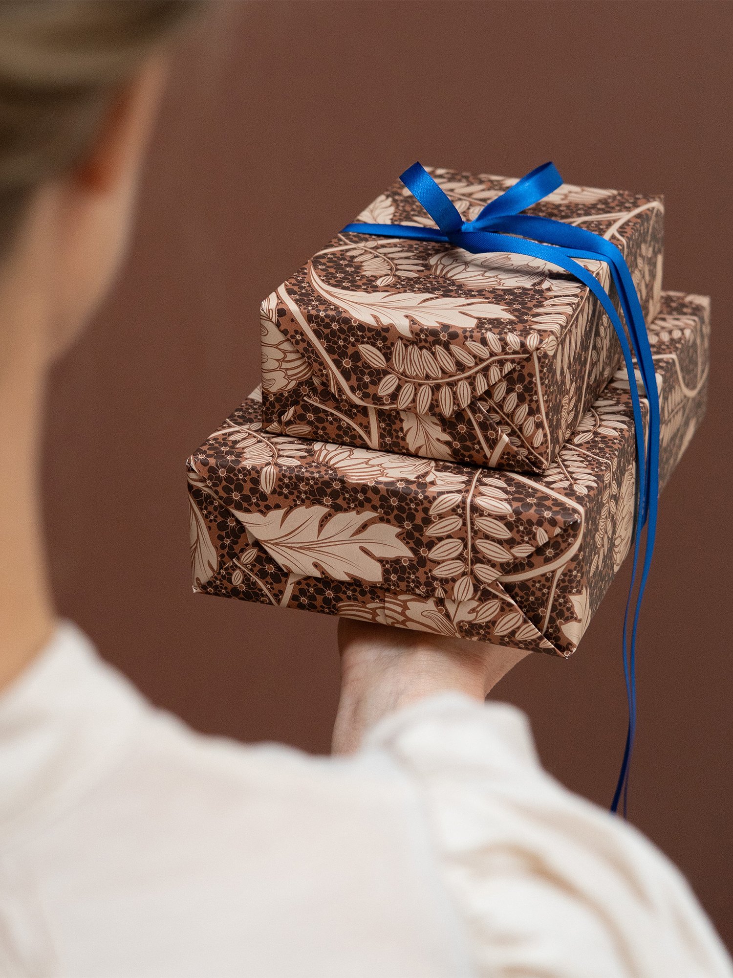 絵画のような模様、美しいカラーパレット、そして絶妙な厚みとマットな手触り。誰でも、何でも。ラフに包むだけでとびきり魅力的な贈り物へと仕上がります。綺麗に包むよりも、自分の手で楽しみながら包む。お相手を想う気持ちが伝わるラッピングアイテムは、自分の手でほんの少し手を加えることで、贈る喜びをさらに感じることができます。