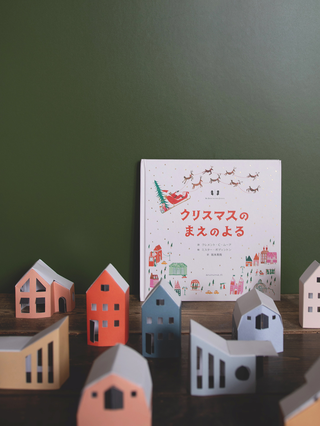 絵本と12のお家のペーパークラフトがセットになった特別なギフトセットは、ソリに乗ったサンタさんから見たクリスマス前夜の街並みを、ご家族皆さまへ届けてくれますよ。