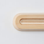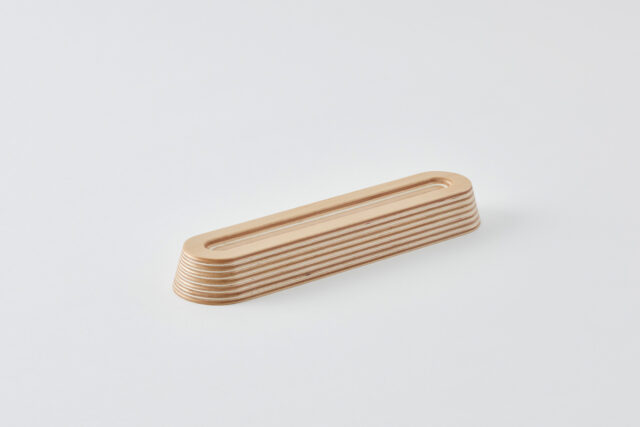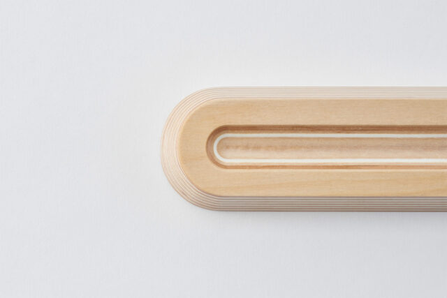 ホワイトのストライプは、再生紙と北海道産木材の積層材「Paper-Wood」という素材そのままの模様。塗装などの加工とは全く異なる奥行きと、すべすべした手触りが特徴です。