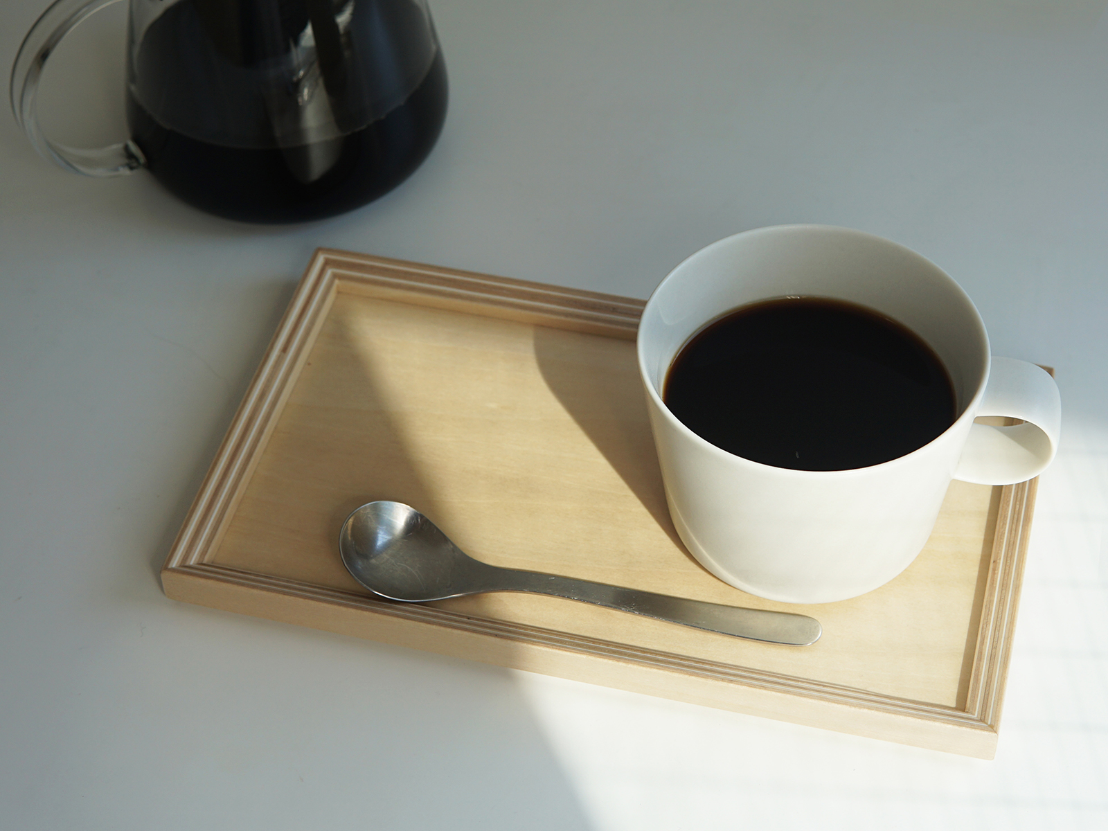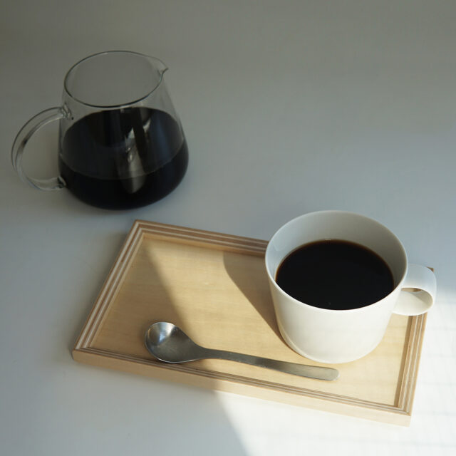 カフェトレイはこのシナの木が持つ木肌の美しさを堪能できるようミニマルにデザインされており、木の優しさや温かみを残しつつも、上品で洗練された空気感を感じることができます。