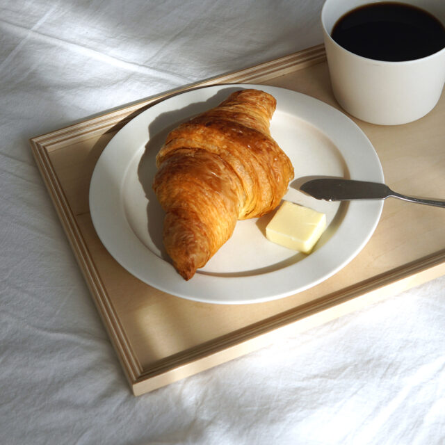 北海道の一流の木工職人さんにより一枚一枚丁寧に製作されるトレイは、長く大切にしたい美しい佇まい。手にするとつくりの繊細さを五感で感じることができます。