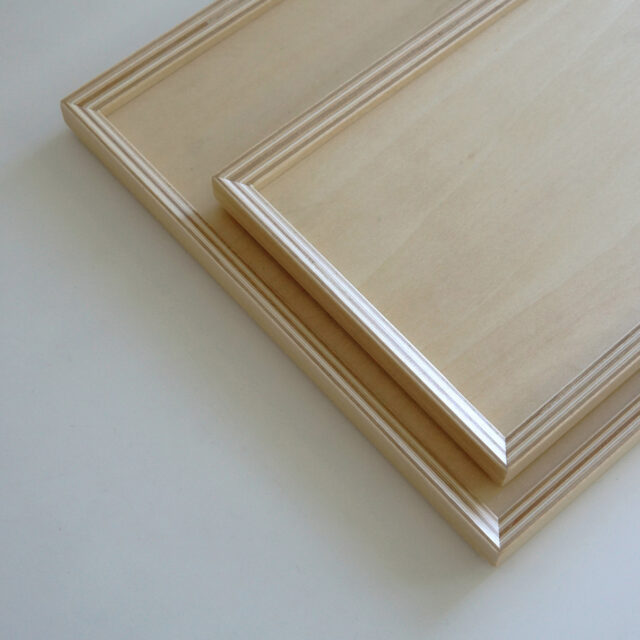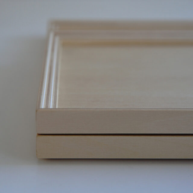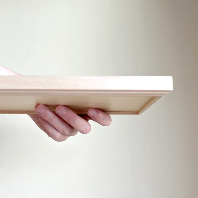 一般的なトレイのように底面を糊で貼り付け支えているものとは異なり、土台となる底板を側板でしっかりはさみこむ構造のため、コーヒーポットや陶器など重いものを載せても全く問題ありません。