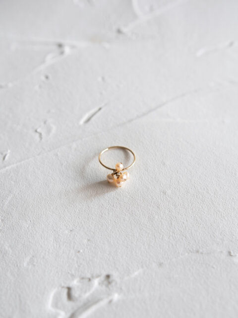 肌馴染みの良いナチュラルピーチの淡水パールをお花のように見立て贅沢に使用したリングです。