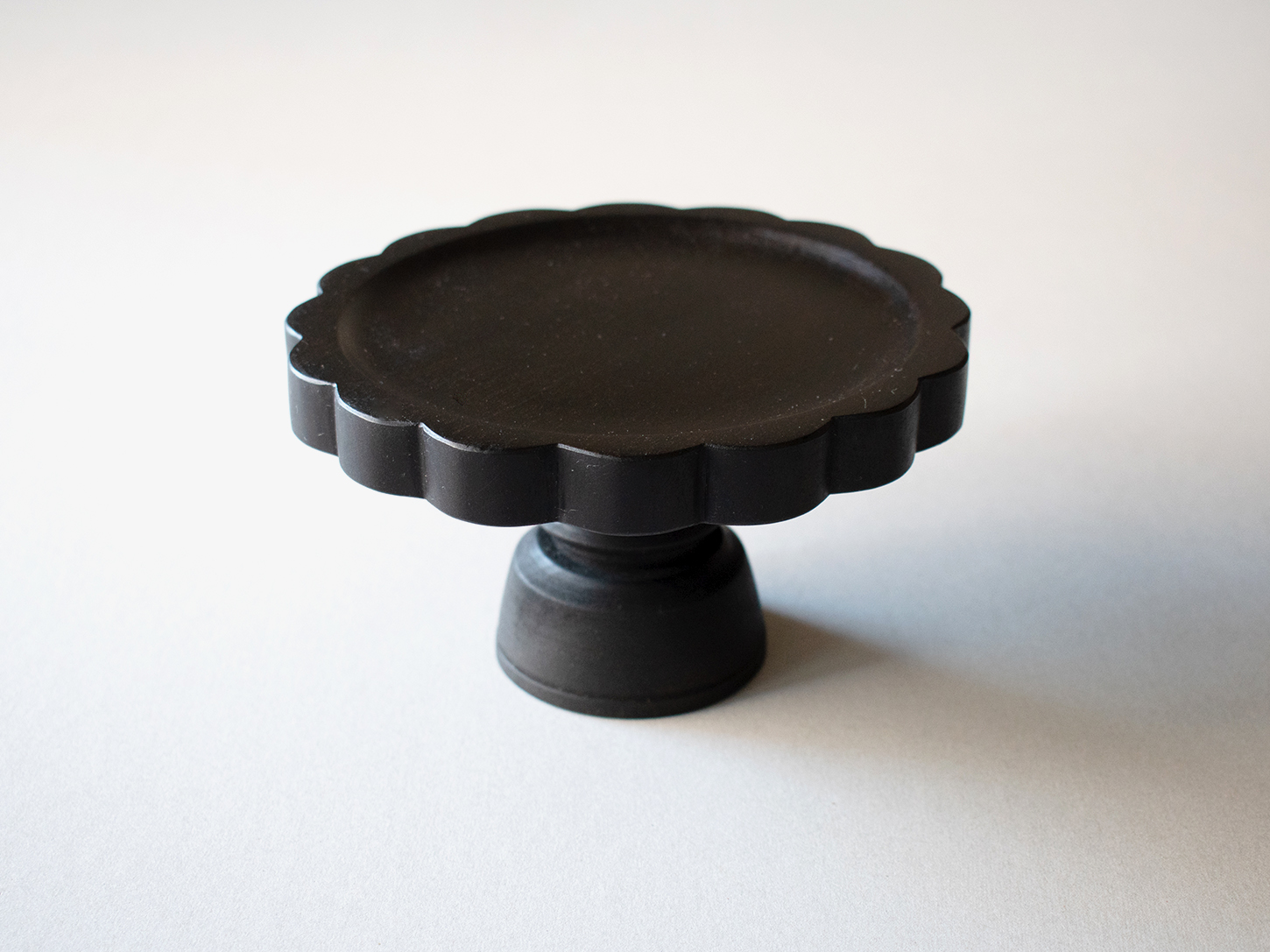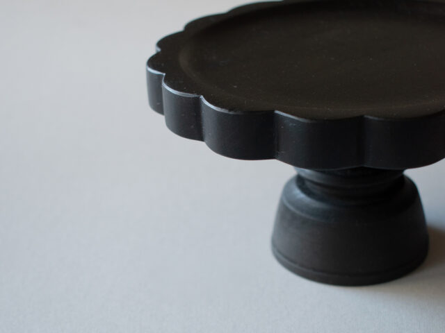 お花を模したシルエットも、クラシカルな台座部分も、美しい黒色も、全て手作業によるもの。上に載せたものはたちどころに輝く、まさに舞台です。