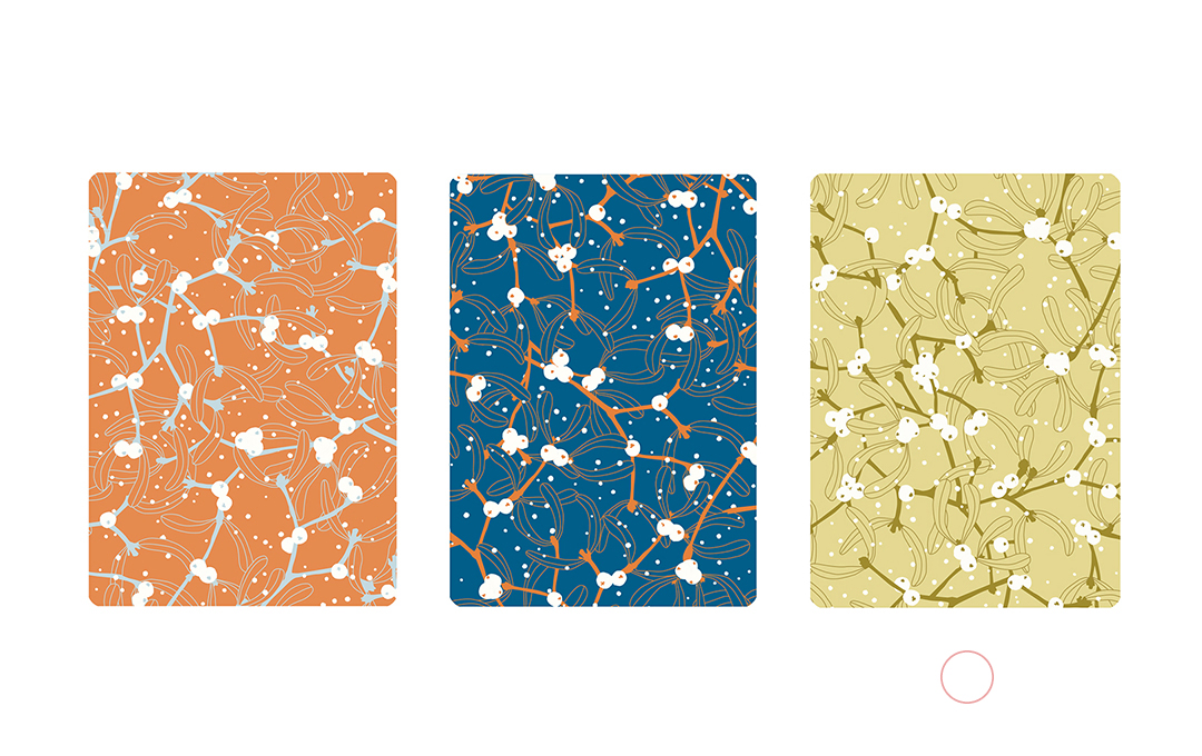 幸運を呼び込むとされるヤドリギ。実の部分をハイデルベルグ活版印刷機で空押ししており、雪の跡のような繊細な手触りがホリデーシーズンの贈り物をやさしく彩ります。
