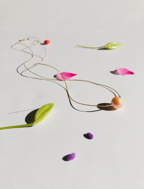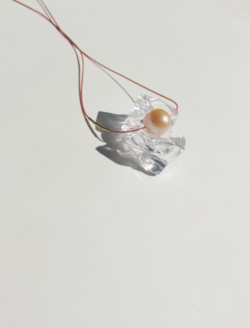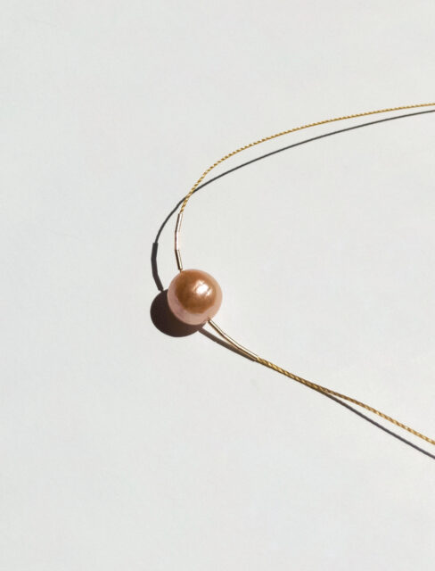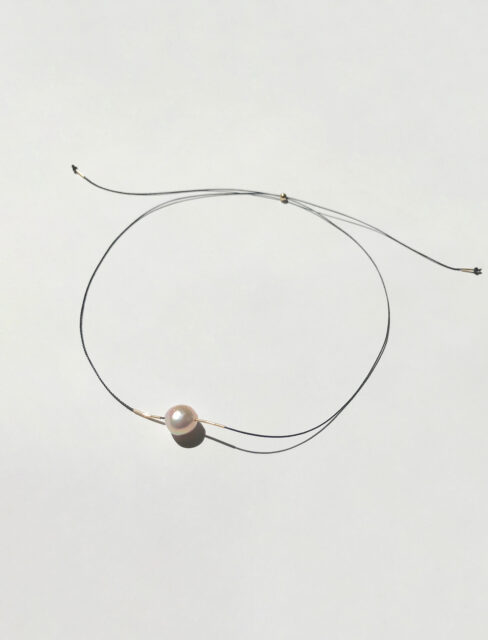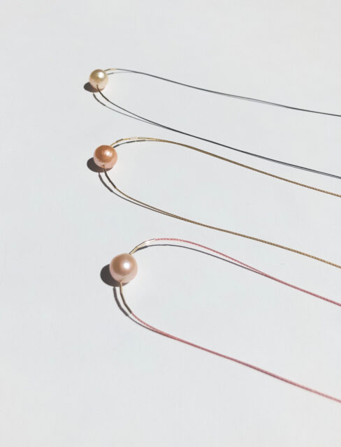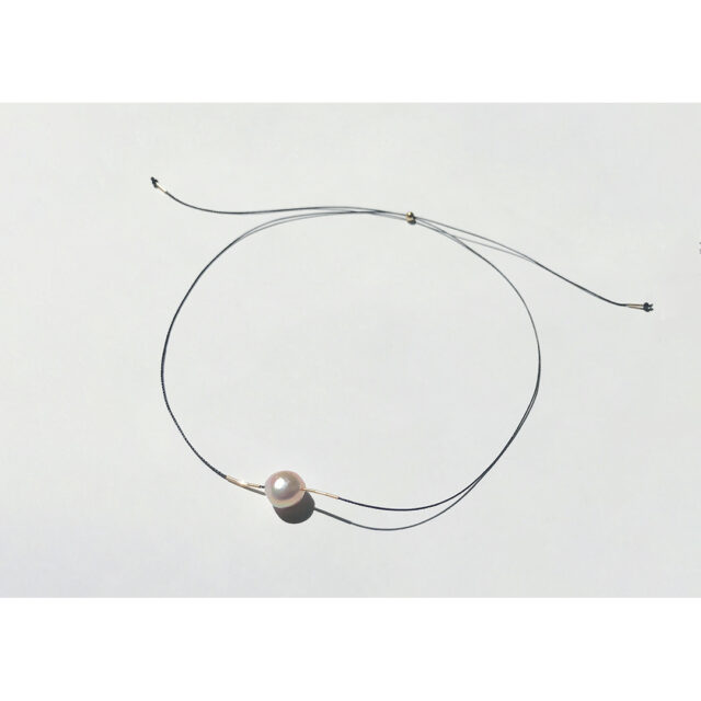 パールの品格と、リサイクルナイロンコードの軽やかさ。相反する素材を組み合わせたこのデザインは、自分らしく日々を楽しむいまの女性にぴったりです。