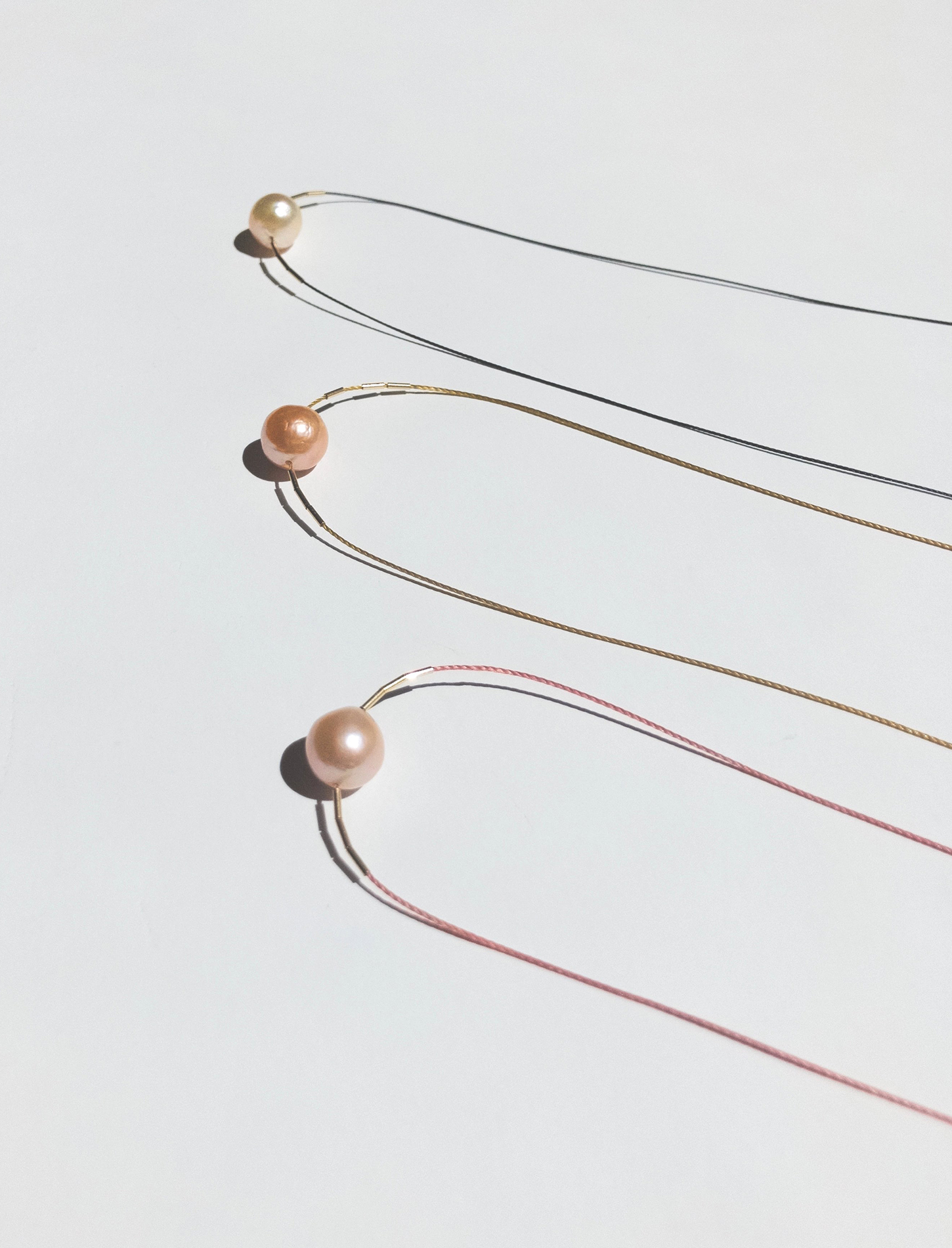 Black/Gold/Rose  バロックパールの個性が引き立つようコードの色はシックなカラーです。