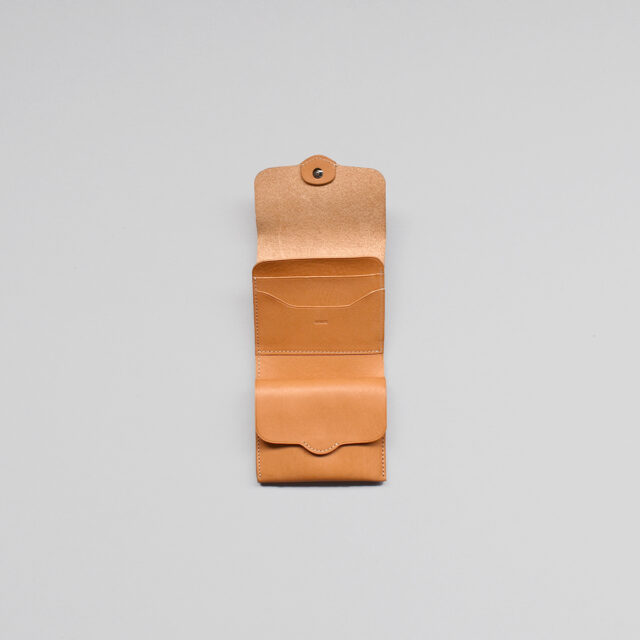 余分なものを削ぎ落とした、お札、カード、小銭が最低限入るサイズのミニマルなヌメ革のミニ財布です。