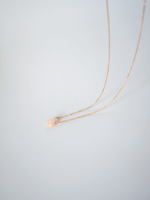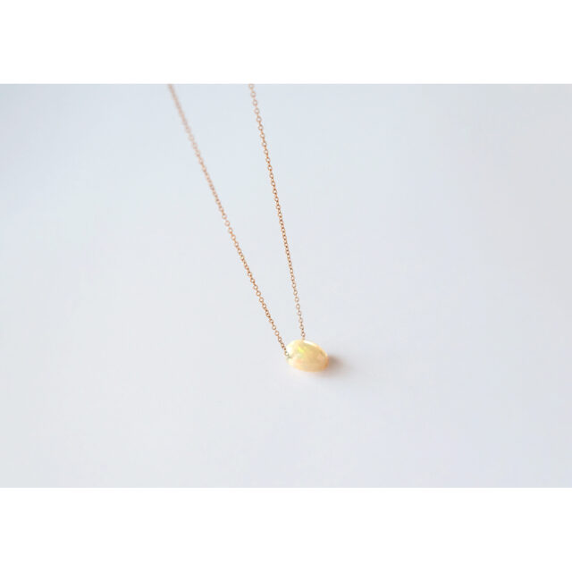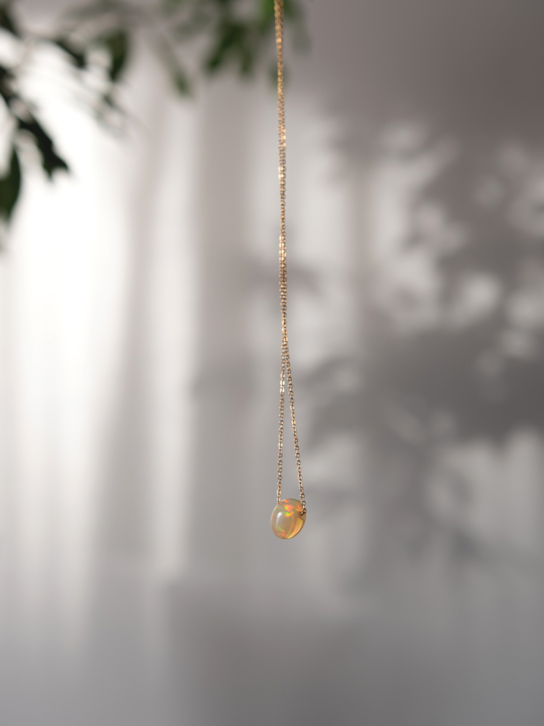 チェーンはニッケルフリーの14Kゴールドフィルドですので、デリケートな肌にも安心です。繊細なチェーンとオパールの遊色が、さりげなくも圧倒的な存在感を放ちます。